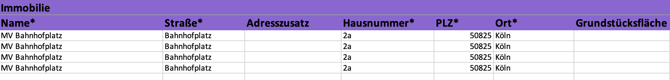 - Wenn derselbe Immobilienname mehrfach vorkommt, müssen alle Angaben absolut identisch sein.
