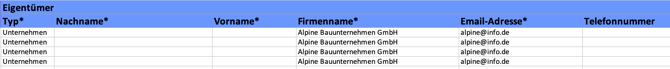 Nur der Eigentümer und dessen zugehörige Daten (z. B. Adresse oder Bankverbindung) werden in der kopierten Zeile angepasst.