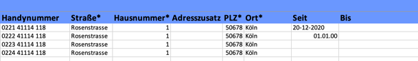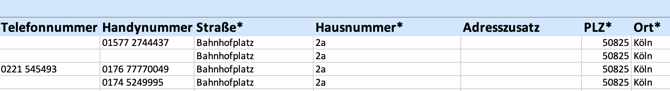 Die Angaben zu Immobilie, Adresse, Gebäude, Vertragsnummer, Miete etc. müssen in allen Zeilen des gleichen Vertrags identisch sein.