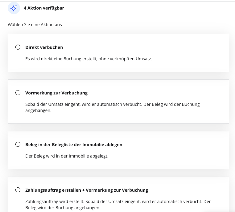 Der Beleg wird lediglich der Immobilie zugeordnet, aber nicht verbucht.