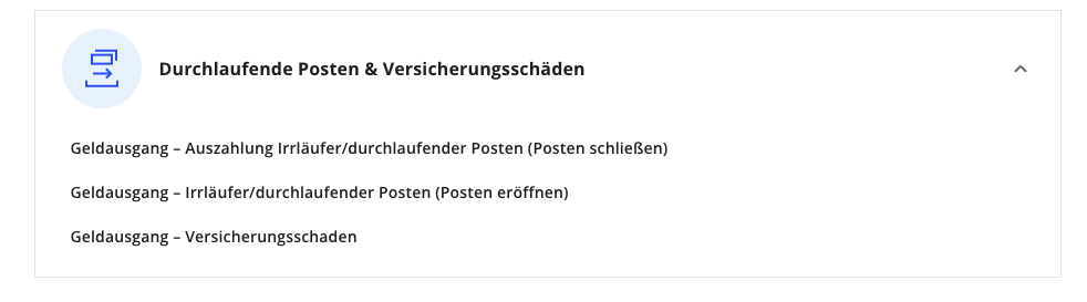 Umsatz verbuchen > Durchlaufende Posten & Versicherungsschäden > Geldausgang – Versicherungsschaden