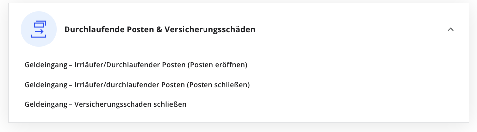 Umsatz verbuchen > Durchlaufende Posten & Versicherungsschäden > Geldeingang – Versicherungsschaden